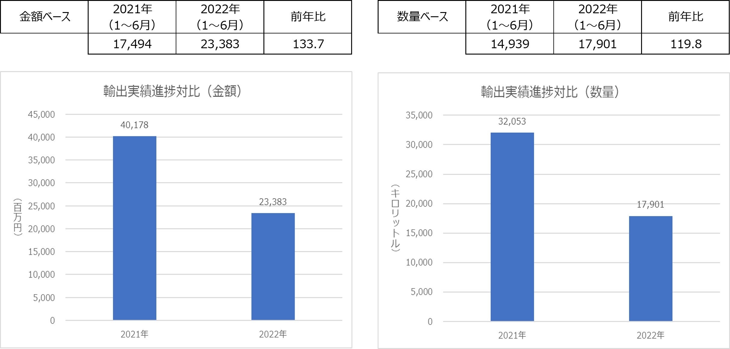通年ではなく、上半期で区切って数字を発表するのは初めての取り組みです。また、金額・数量とも堅調に伸びていることから、通年の輸出総額の着地も好調であると予想されます。