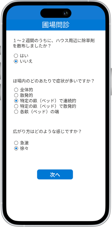 問診は人間の専門家が診断時に行う観察、聞き取り内容を再現したもので、画像1枚のみの診断では排除できない明らかな誤診を防ぐことができ、主要な病害虫11種を平均精度94%(従来比16%向上)で診断できるようになりました。生産者はスマートフォンを通じて、撮影した写真や過去の画像をもとに迅速な診断結果を得ることができるため、病害虫被害の軽減や農薬の適正な使用につなげることが期待されます。
