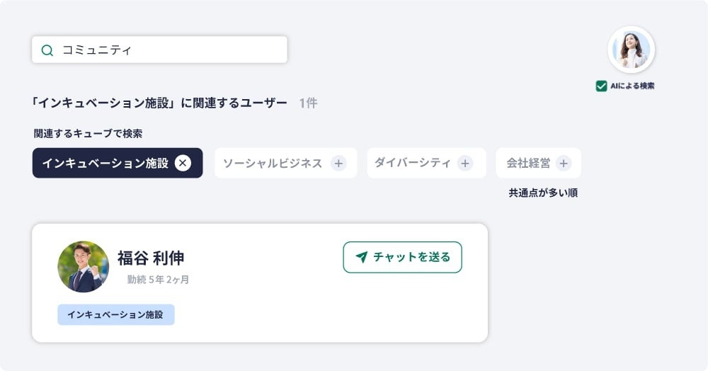 チャットツールはリアルタイムのコミュニケーションには適しているものの、個々の関心やスキル、アセットを把握しにくいため、新たなつながりを生み出すのが難しい
