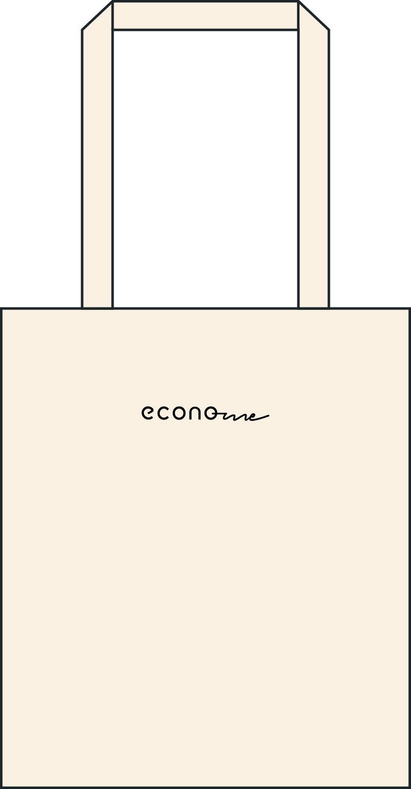 econo-me初のオリジナルグッズを発売します。アイテムは、オーガニックコットン製のトートバッグです。シンプルなモノクロロゴを入れ込んだデザインで、サブバッグとしても使いやすい厚みと大きさが特徴です。