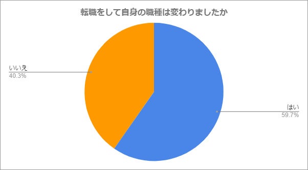 「転職をして職種は変わりましたか」と質問をしたところ、59.7%の方が「はい」と回答しました。