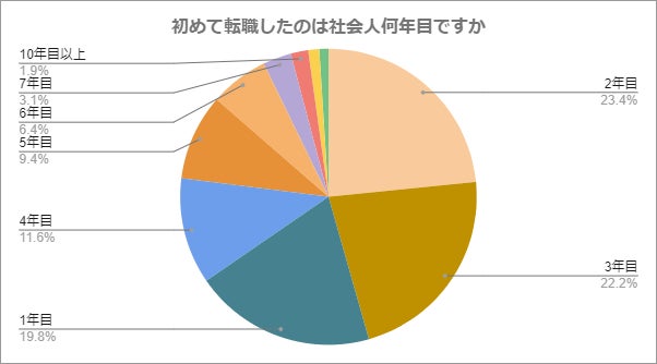「2年目」と回答した方が23.4%で最多となり、「3年目」が22.2%、「1年目」が19.8%と続きました。