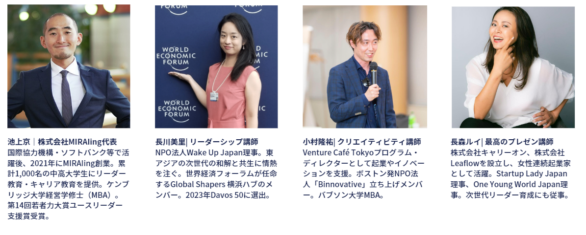 春休み期間中の対面開催であることを活かし、学校では得難いグローバルで活躍する講師陣からの講義と、新規事業立案にゼロから取り組む実践的なプロジェクト提供します。