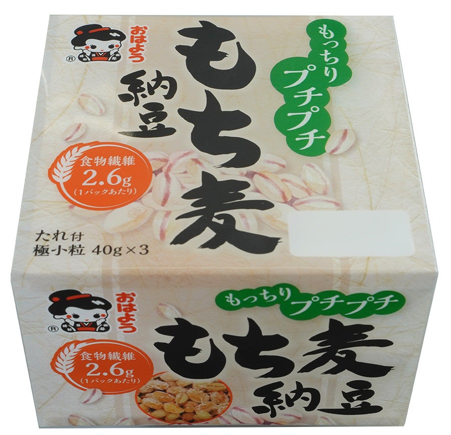 1、もっちりプチプチとした食感が特長のもち麦を、じっくりと蒸上げた極小粒大豆に混ぜ込み納豆に仕上げました。もち麦と納豆の組み合わせで食べた時にしっかりと満足感が味わえます。