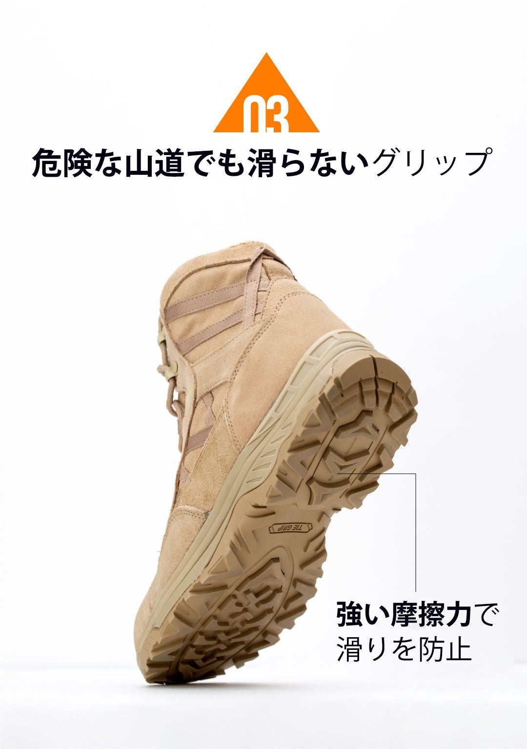 - 危険な山道でも滑りにくいグリップ