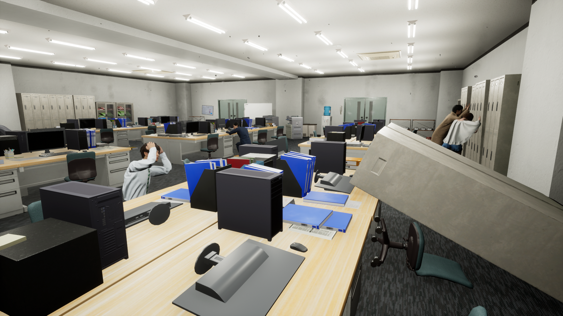 ◇シーン4:大地震、そして火災の恐怖(オフィス内での避難行動)