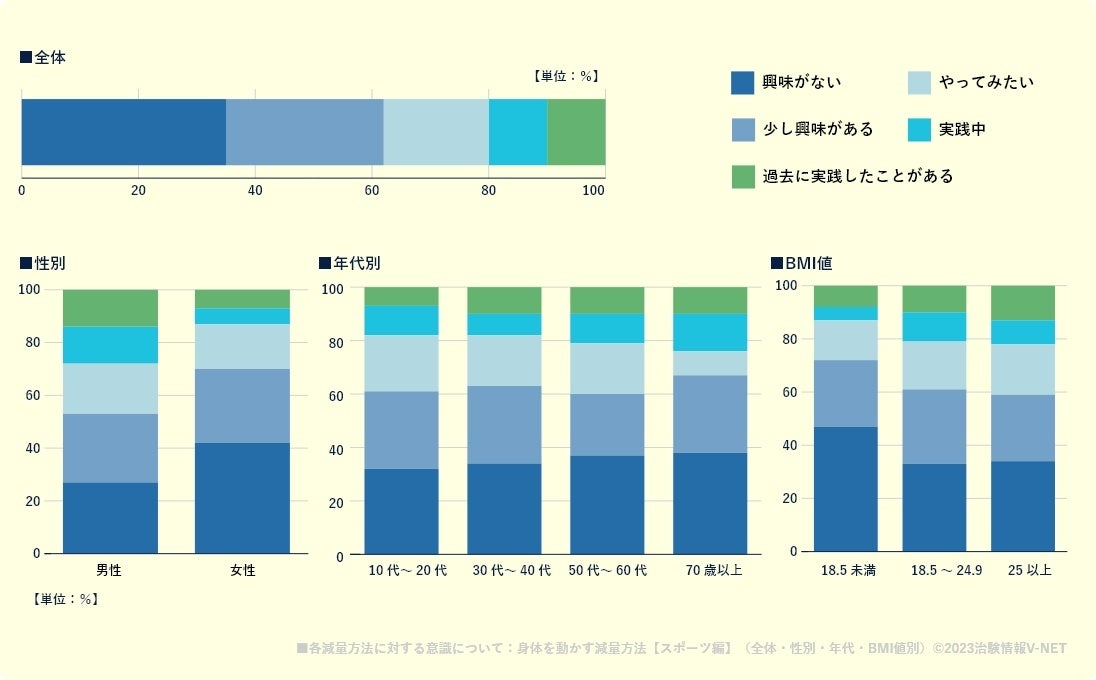 2023年6月12日(月)~7月11日(火)にかけて行った、“ダイエット意識に関するアンケート”の集計結果を同社が運営する治験情報サイト「治験情報V-NET」でお知らせいたします。
