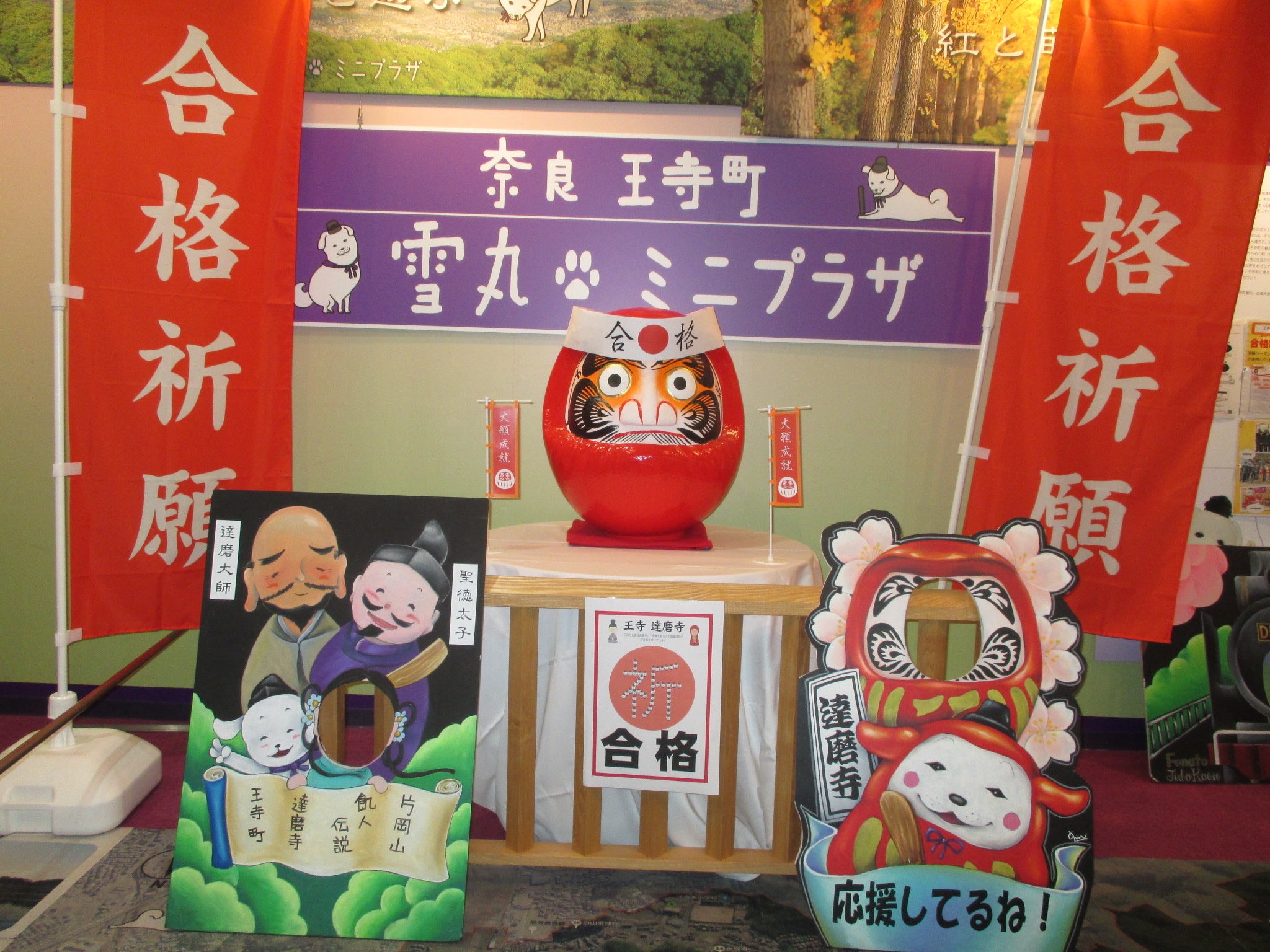 JR王寺駅、近鉄王寺駅・新王寺駅、奈良交通王寺案内所、東横イン奈良王寺駅南口、王寺町観光協会が連携し、達磨寺で大願成就のご祈祷済み合格だるまを展示、王寺町から頑張るみなさまを応援しています!