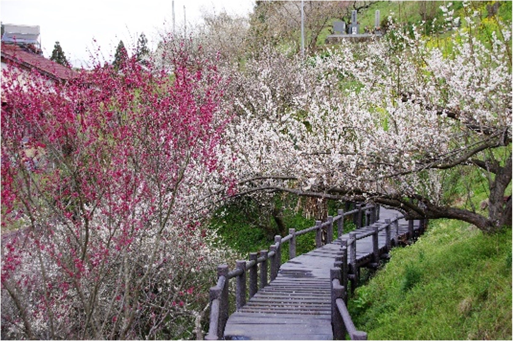 広橋梅林は月ヶ瀬、賀名生とならぶ奈良県三大梅林の一つとして知られています。広橋峠の北側斜面、約25ヘクタールにわたって約5,000本の梅が植栽されており、2月下旬から3月下旬が見頃です。白梅、紅梅、そして淡桃色、一重咲き、八重咲きなど色とりどりに咲匂う梅と景色をお楽しみください。また、金剛葛城両山や大和平野を見渡せる眺望も素晴らしく、青梅が実る初夏もお勧めです。