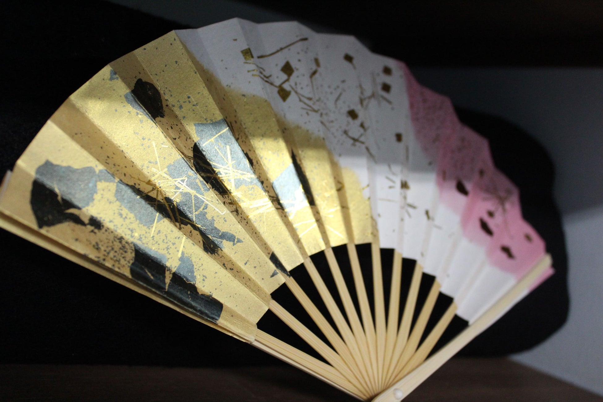砂子とは、料紙、短冊や色紙、襖紙(ふすまがみ)などに金箔の粉末を振った、1000年前から日本に受け継がれる伝統技法です。画面に施された細かい箔の粒が砂のように見えることからこの名がつきました。今回は扇子の上に金や銀の箔(はく)を施す装飾体験します。体験した扇子は持ち帰ることができます。