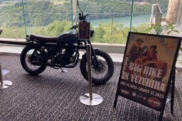 ゆずり葉ロビーにて、愛知県を中心にオートバイ専門店を展開する株式会社チャンピオン76様のご協力で、ハーレーダビッドソン、BMW、MUTTの3台の大型バイクを展示致します。イベント期間中は、ロビーの窓辺一面に広がる恵那峡の美しい景観を背景に記念写真を撮影することができます。