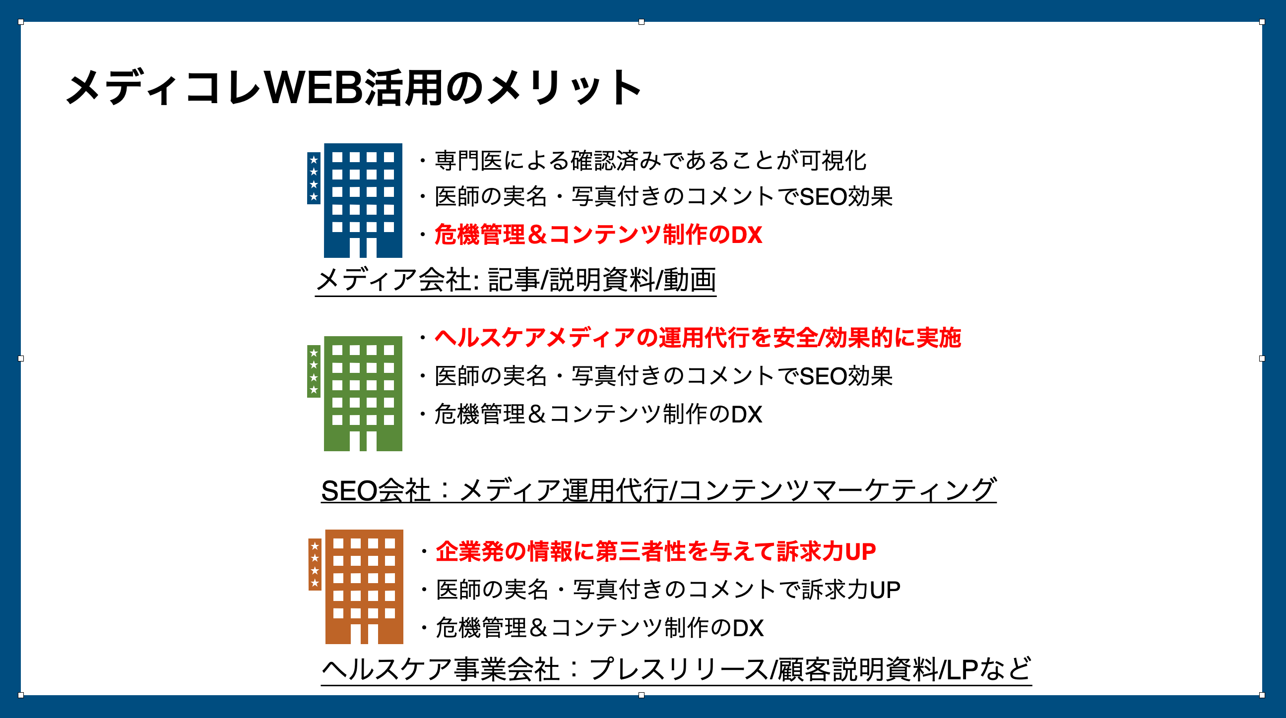 ヘルスケア企業のコンテンツマーケテングを安全かつ効果的に実施することを実現します。