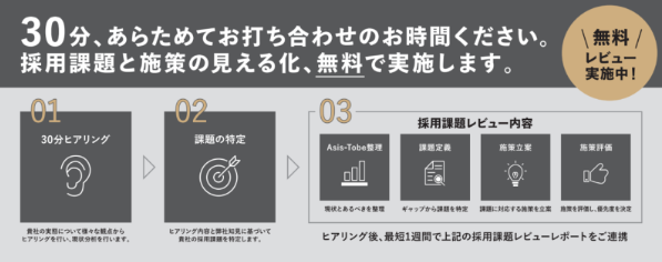人材業界出身の専門家が在籍し、新卒・中途採用やマイナーな職種の採用支援などあらゆるご要望にお応えしてきました。コストを抑えつつ、採用効果を最大限に高めるために真の課題を見極めた上で、最適な解決策をご提案します。この度、リンクタイズデジタルとの新たな採用ソリューションとして、リンクタイズグループのお客様に向けて、無料相談キャンペーンを実施させていただく形となりました。