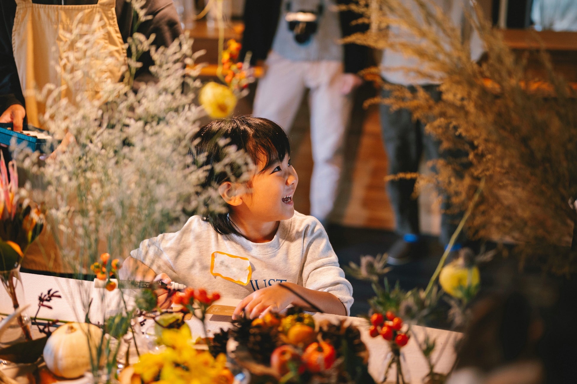 イベントでは、こどもたちが鹿肉の調理と食空間の装飾を担当し、レストランのスタッフとして食の現場を体験します。会場の装飾に四季折々の山の植物を用いることで、鹿が生活する森にも目を向けてもらう機会を作っています。