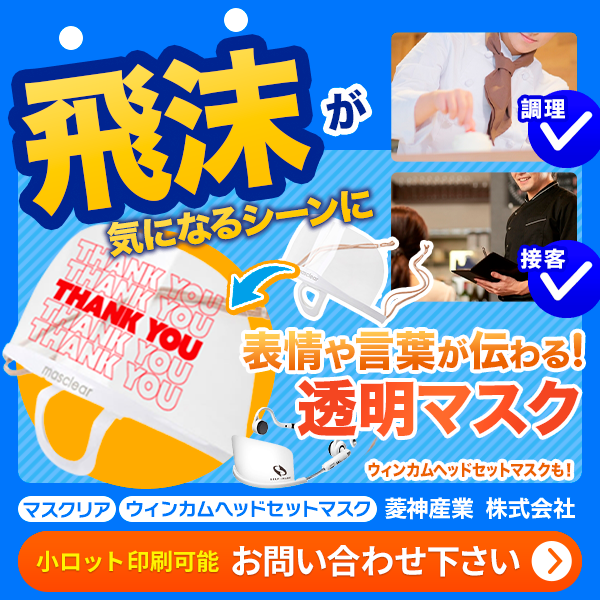 今回、「飲食店の感染対策」に関する調査を実施した菱神産業株式会社(https://www.ryoshin.com)は、透明マスク『マスクリア』(https://www.ryoshin.com/service/masclear/)を販売しています。