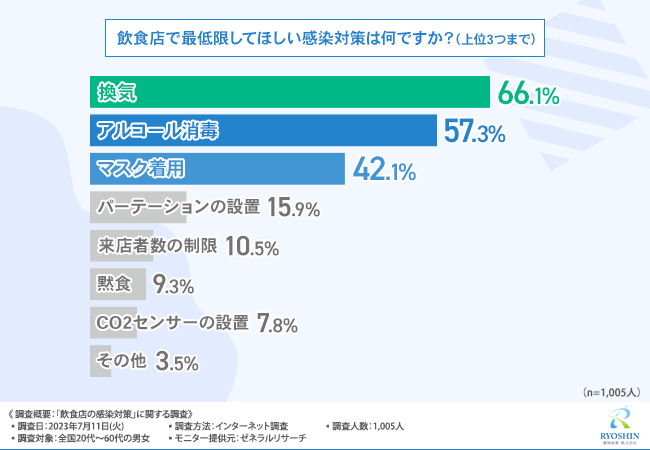 先ほどの調査で、最低でも換気やアルコール消毒、マスクの着用を飲食店の従業員に求めている方が多いことが分かりました。