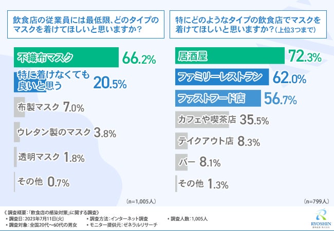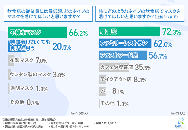 飲食店の従業員には不織布マスクの着用を約7割が求めている!
