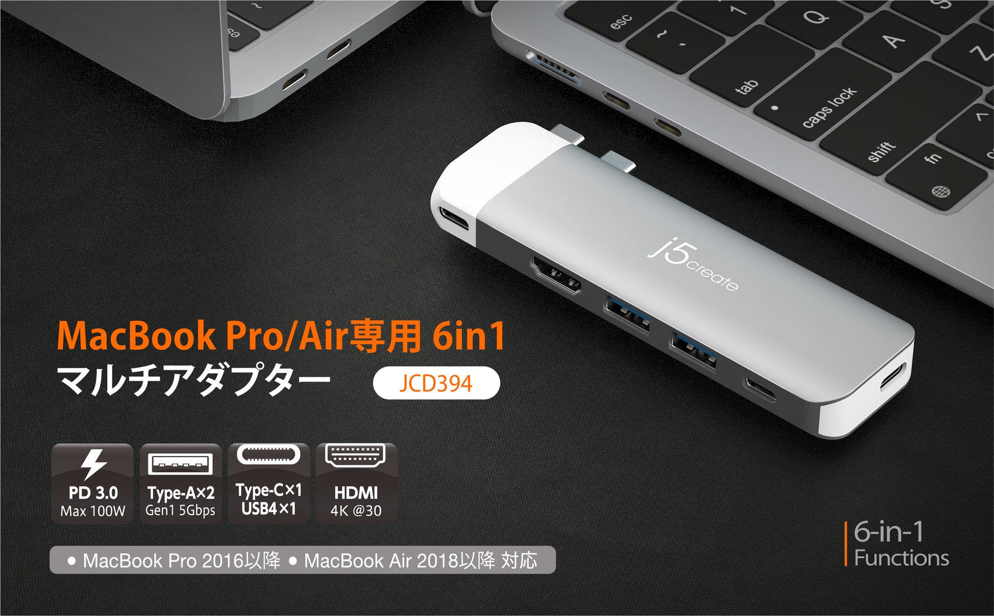 『MacBook Pro/Air専用6in1マルチアダプター JCD394』