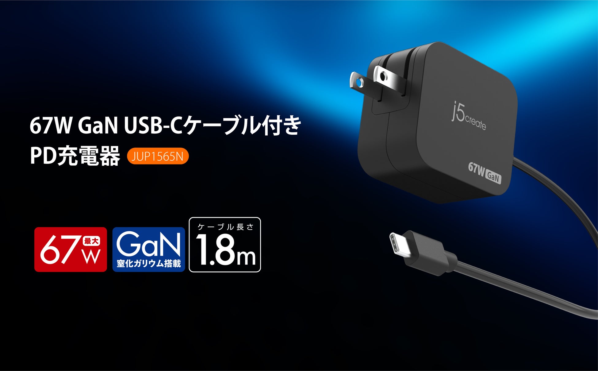 『67W GaN USB-Cケーブル付き PD充電器 JUP1565N』
