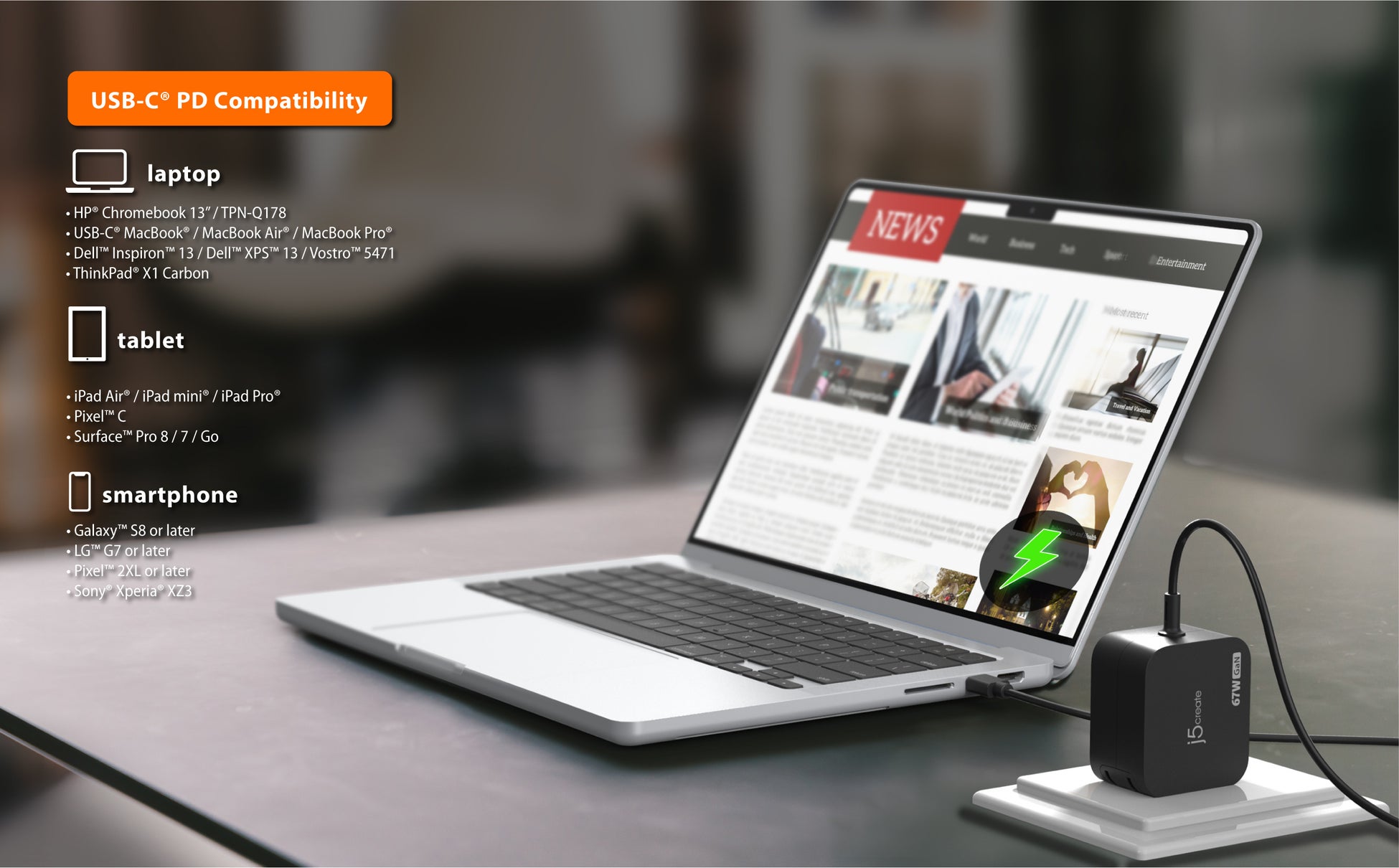 j5create、『MacBook Pro/Air専用6in1マルチアダプター JCD394』・『67W GaN USB-Cケーブル付き PD充電器 JUP1565N』を6月2日に発売