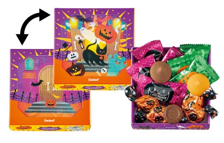 今年も「配る」「食べる」「遊ぶ」をコンセプトにしたお菓子が登場します。毎年人気のすごろく付きのお菓子「ハロウィンファンボックス」や、ハロウィンテーマのなぞなぞを解いてお菓子を食べる「ハロウィンなぞなぞボード」等、合計12商品を発売いたします。