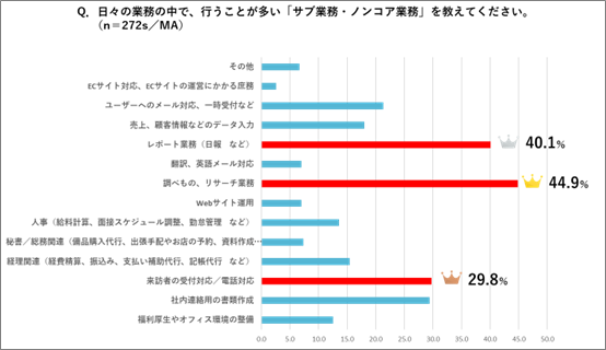 ・行うことが多いサブ業務・ノンコア業務の1位は「調べもの、リサーチ業務」。