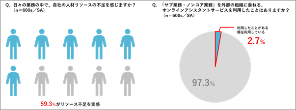 ※本調査におけるサブ業務・ノンコア業務は、営業活動やマーケティング活動など企業活動の根幹を成すコア業務に対して、備品の管理や来訪者の受付対応などその業務自体で利益は生まれないものの、企業のコア業務遂行をサポートするために必要な業務全般を指します
