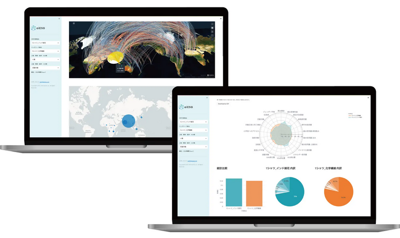 「aiESG」は、世界初となる製品およびサービスレベルの包括的なESG分析を可能とするサービスです。aiESG保有のESGサプライチェーンビッグデータを用いたAI分析により、3200余りのESG指標について詳細な試算が可能であるだけでなく、業界平均・従来品等との比較が可能です。特に、CO2などの環境面だけでなく、近年重要性が増している人権、生物多様性、労働環境等を含めた社会面やガバナンス面を定量的に評価可能な点において世界初のソリューションとなります。