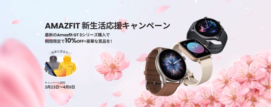 Zepp Health Corporationの独自ブランドである「Amazfit」は、新生活応援キャンペーンと題して、3月23日(木)~4月8日(金)の期間中、最新スマートウォッチ「Amazfit GT 3シリーズ」を10%OFFで販売します。またご購入していただいた先着300名様にオリジナルスポーツウェアとヘアバンド、ギフトバッグをプレゼントします。