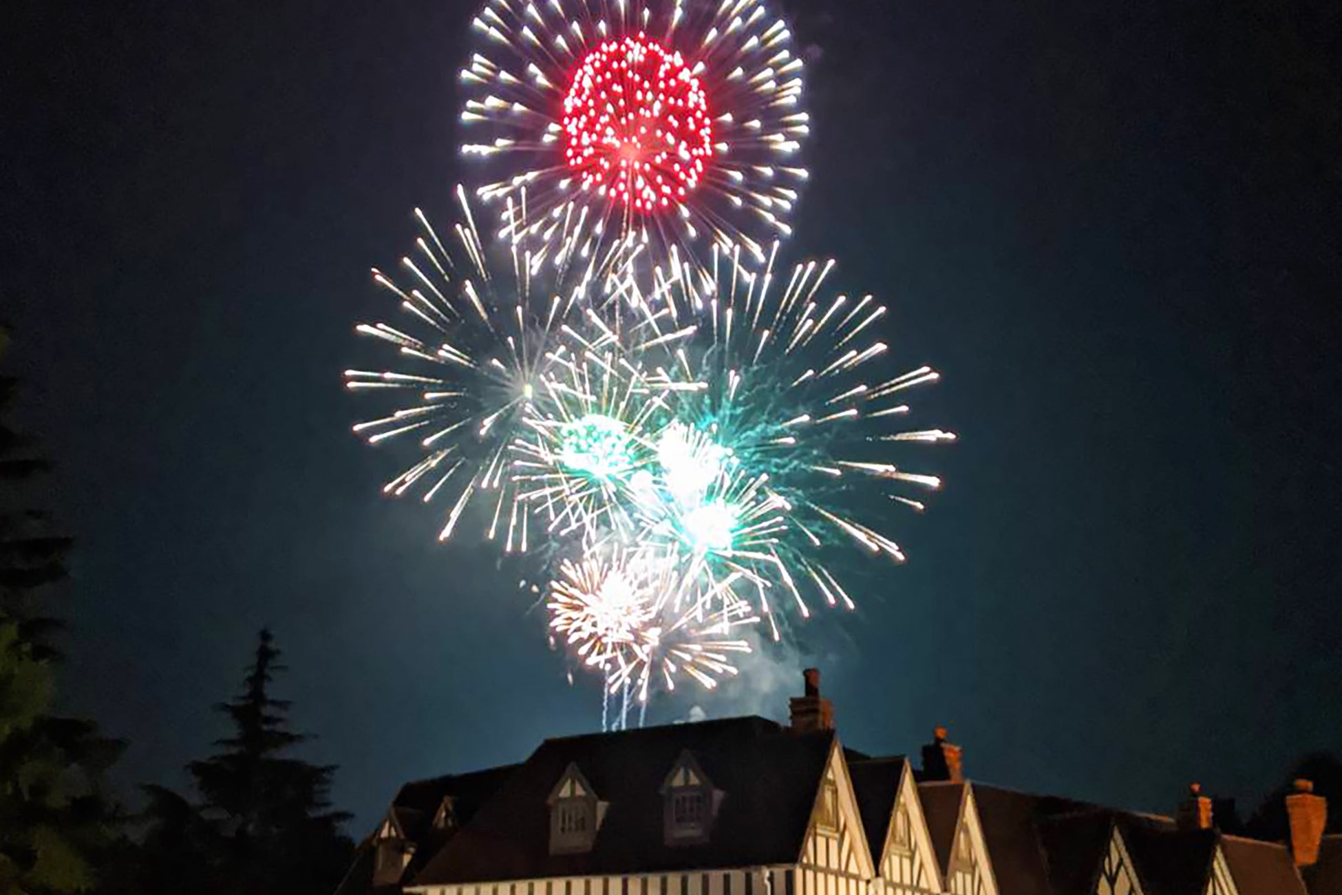 もみじを彩る約1,000発の華やかな秋の打ち上げ花火。
