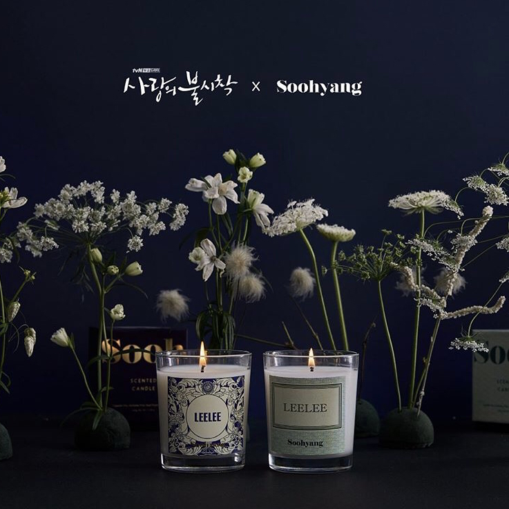 実際に韓国で販売されている、Soohyang ( スヒャン ) というルームフレグランスブランドが、「 愛の不時着 」とのコラボレーションモデルとして展開した「 LEELEE CANDLE ( リーリーキャンドル ) 」という期間限定商品である。