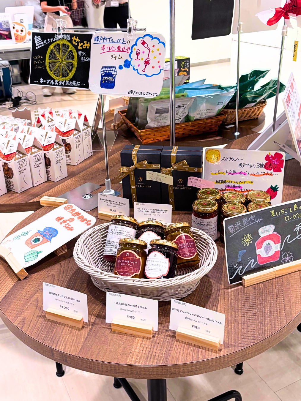 美祢市にある「道の駅おふく」様に参画いただき、当日3日間は現地のスタッフによる美祢市の特産品の販売。そこでしか買えない「ごぼうチップス」や梨カステラ、Ohmineなの地酒を含む多彩なジャンルの物産ブースとなりました。