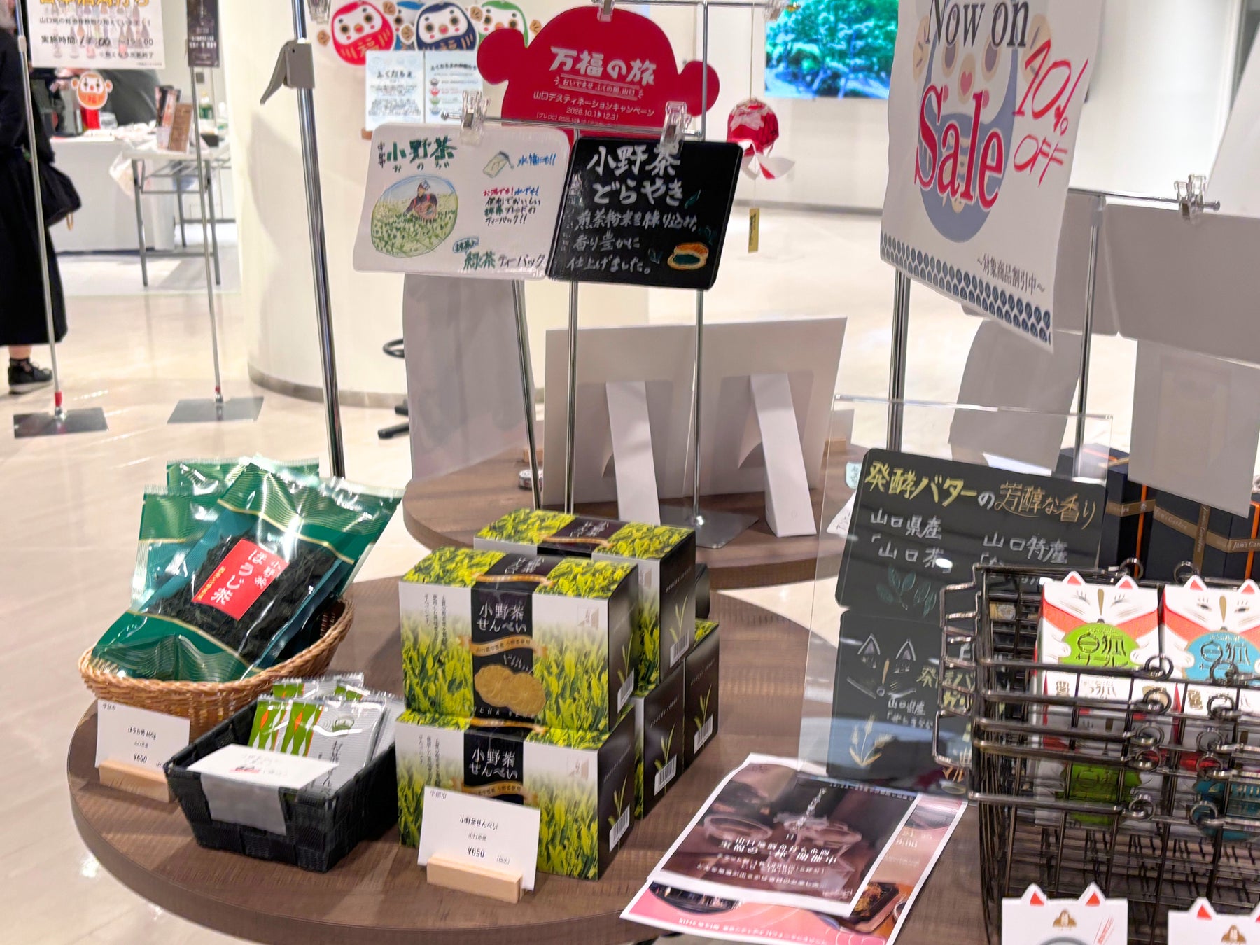 物産展においては、美祢市道の駅おふくの名産品と山口の日本酒、及び県全体の名産品を販売や、日本酒の試飲企画を実施いたしました。