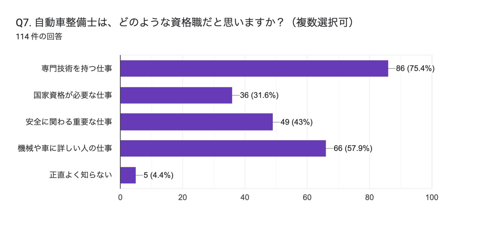 自動車整備士という職業自体は若年層にとって身近に感じられている一方、その仕事に国家資格が必要という事実は十分に共有されていません。「どんな仕事か」はイメージできても、裏側にある制度や専門性までは認識が及んでいない構造です。