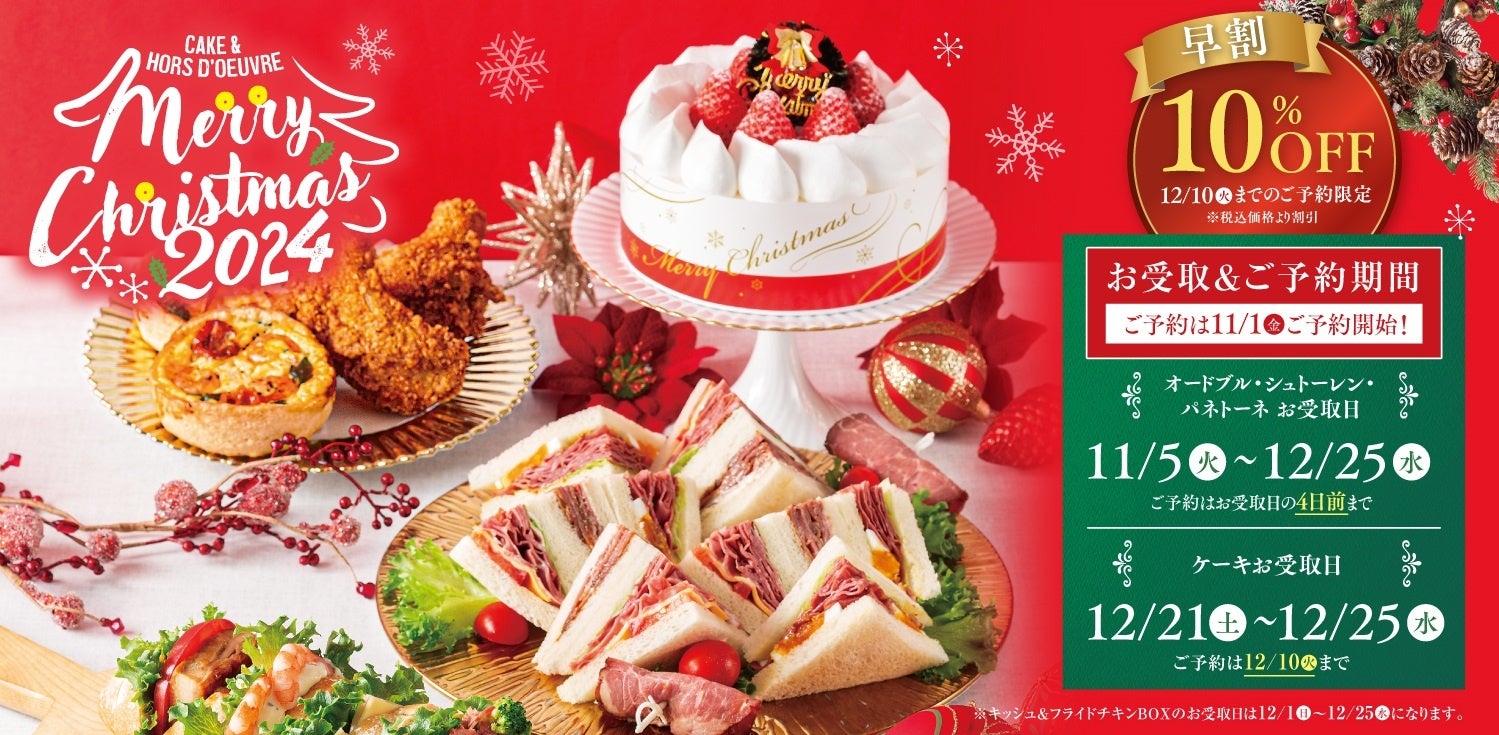 ベーカリーカフェの先駆け「ヴィ・ド・フランス(VIE DE FRANCE)」を全国展開し、昨年創業40周年を迎えた株式会社ヴィ・ド・フランス(本社:東京都江戸川区)は、2024年11月1日(金)より『クリスマスオードブル&ケーキ』のご予約をWEBと店頭・電話にて開始します。