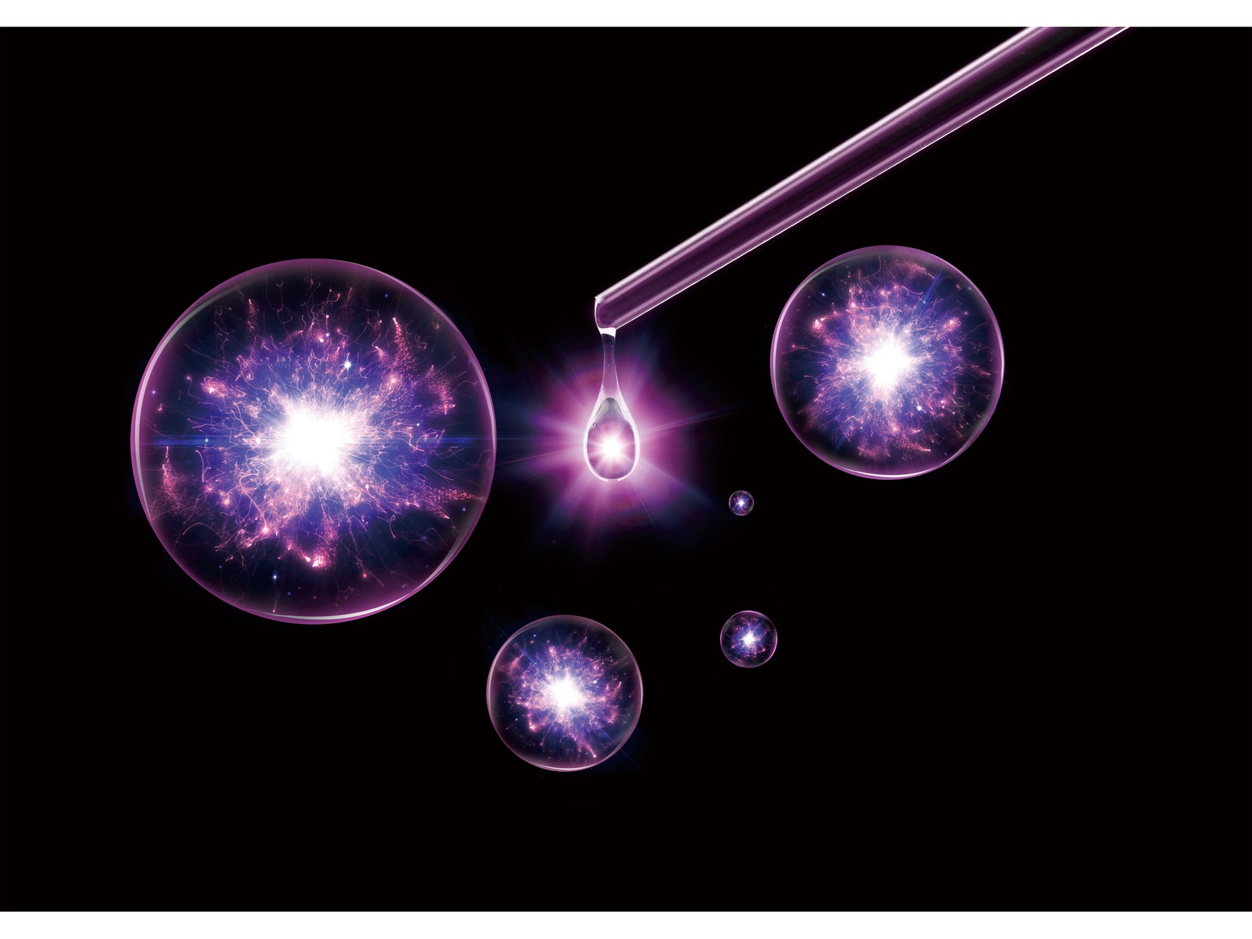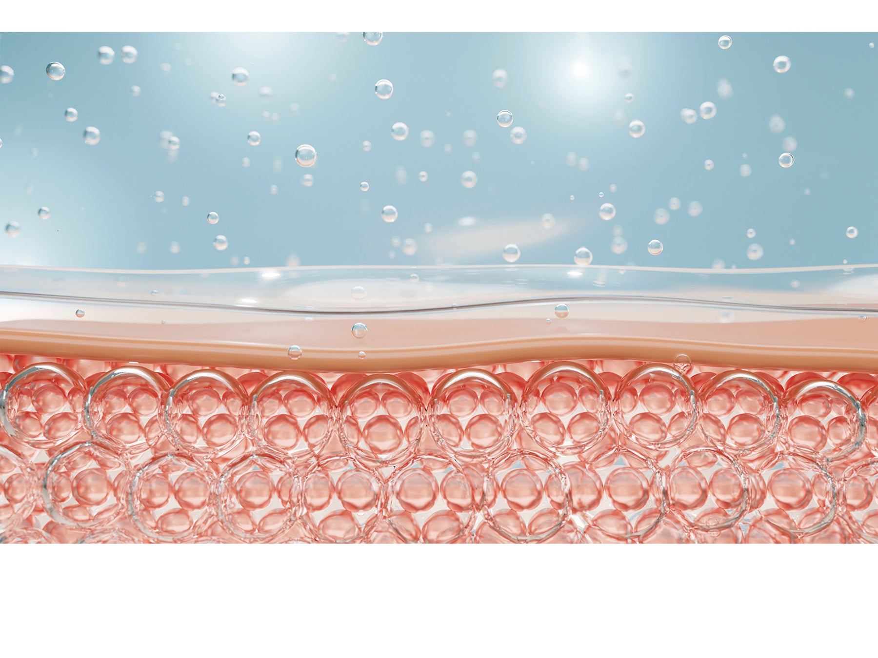 ナノコラーゲンをまとった中央のプラチナナノ粒子が、周りのコラーゲンやヒアルロン酸などの保湿美容成分を引き連れて角層のすみずみまで浸透。内側*2からあふれるようなうるおいとハリ感をもたらします。
