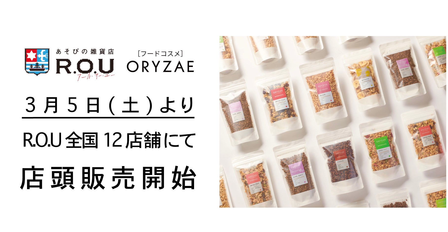 株式会社アグクル(所在地:東京都品川区、代表取締役:小泉泰英)が展開する、“手軽に腸活“をテーマとしたフードコスメブランド「ORYZAE(オリゼ)」は、2022年3月5日(土)より、R.O.U 株式会社(アール・オー・ユー)が運営するあそびの雑貨店:R.O.U(アール・オー・ユー)の全国12店舗にて、米麹グラノーラの販売を開始いたします。