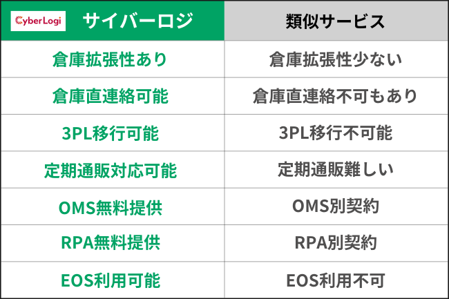 外部のOMS不要、RPA不要、WMS不要ですべてサイバーロジの内蔵システムでご利用いただけます。