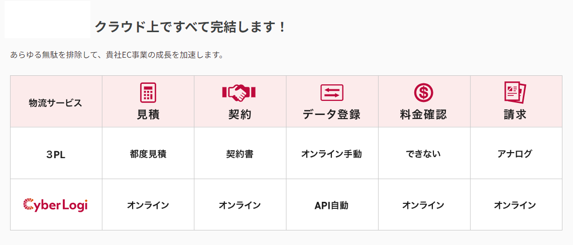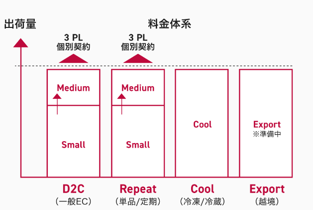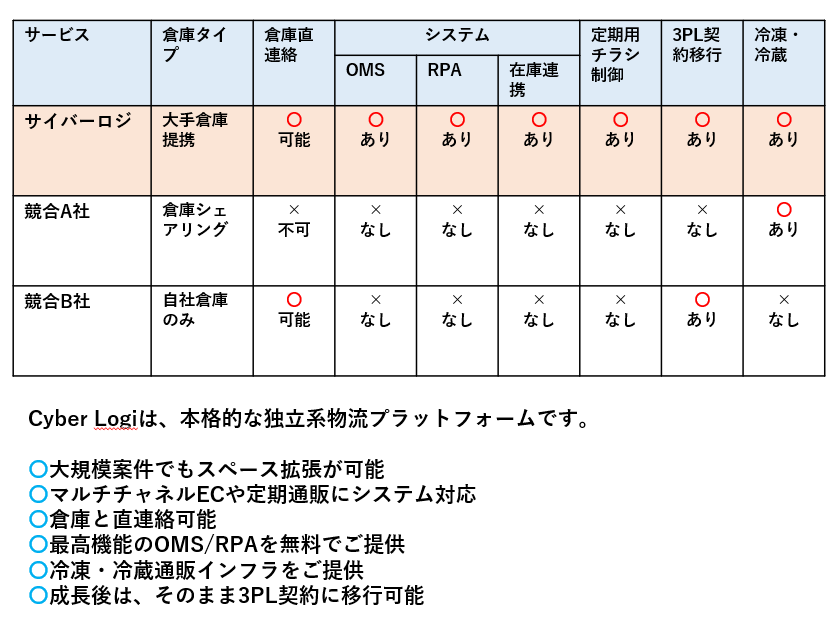 少ない物流サービスメニュー | 大規模物流のため、シンプルな物流サービスメニュー。 |