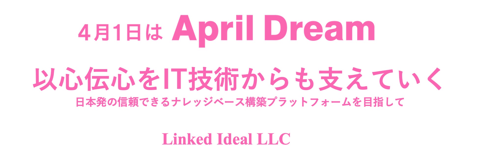 当社は、4月1日を夢を発信する日にしようとするApril Dreamに賛同しています。このプレスリリースは「Linked Ideal LLC」の夢 です。