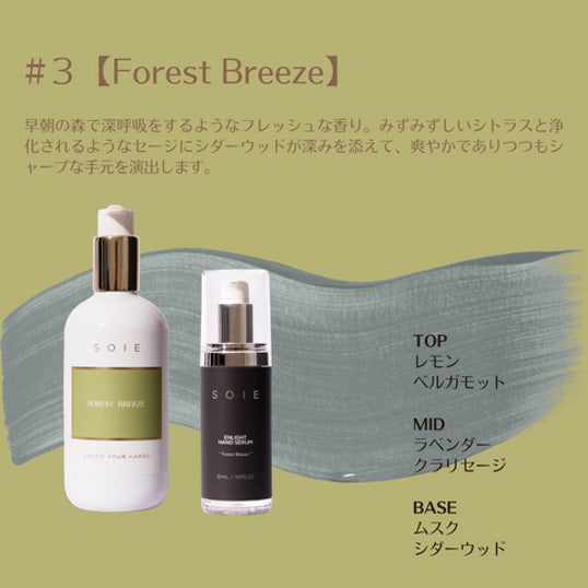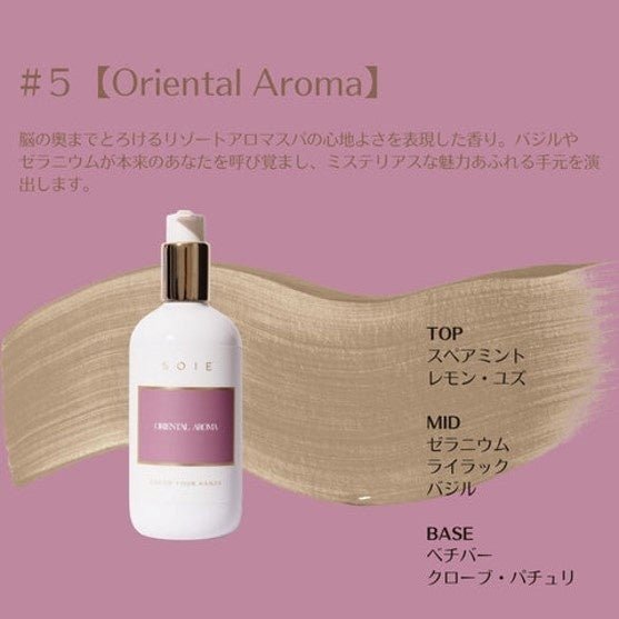 時に面倒な手洗いを美容ケアとして楽しむことが出来る新しいハンド&ボディソープ。植物とサイエンスを掛け合わせた保湿処方で乾燥から守り、美容成分がうるおいを付加します。SOIEの専属調香師が手掛けた香りは深みがあり、香水のような贅沢な香りの体験を生み出します。