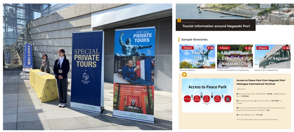 ページには「長崎でやりたいことを決めていない」クルーズ客に向け、インフォメーションブースでよく聞かれる情報を掲載。ターミナルの混雑を緩和し、観光の選択肢を広げます。