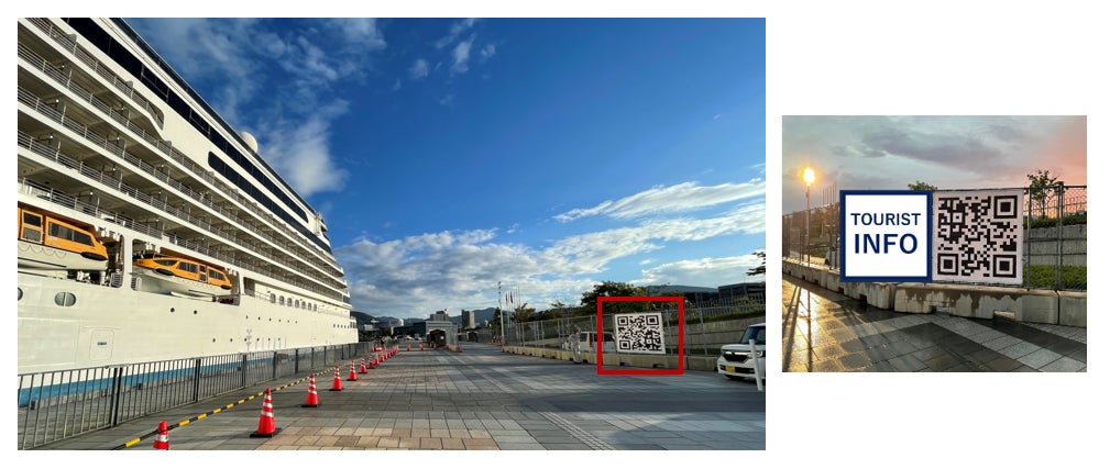 また、船上からでもアクセス可能な大型QRコードを岸壁付近に設置することで、着岸から下船までの時間を活用し、長崎の観光情報を迅速に提供します。紙媒体ではなくWeb媒体を採用することで、手荷物が少ないクルーズ客の利便性を考慮しました。