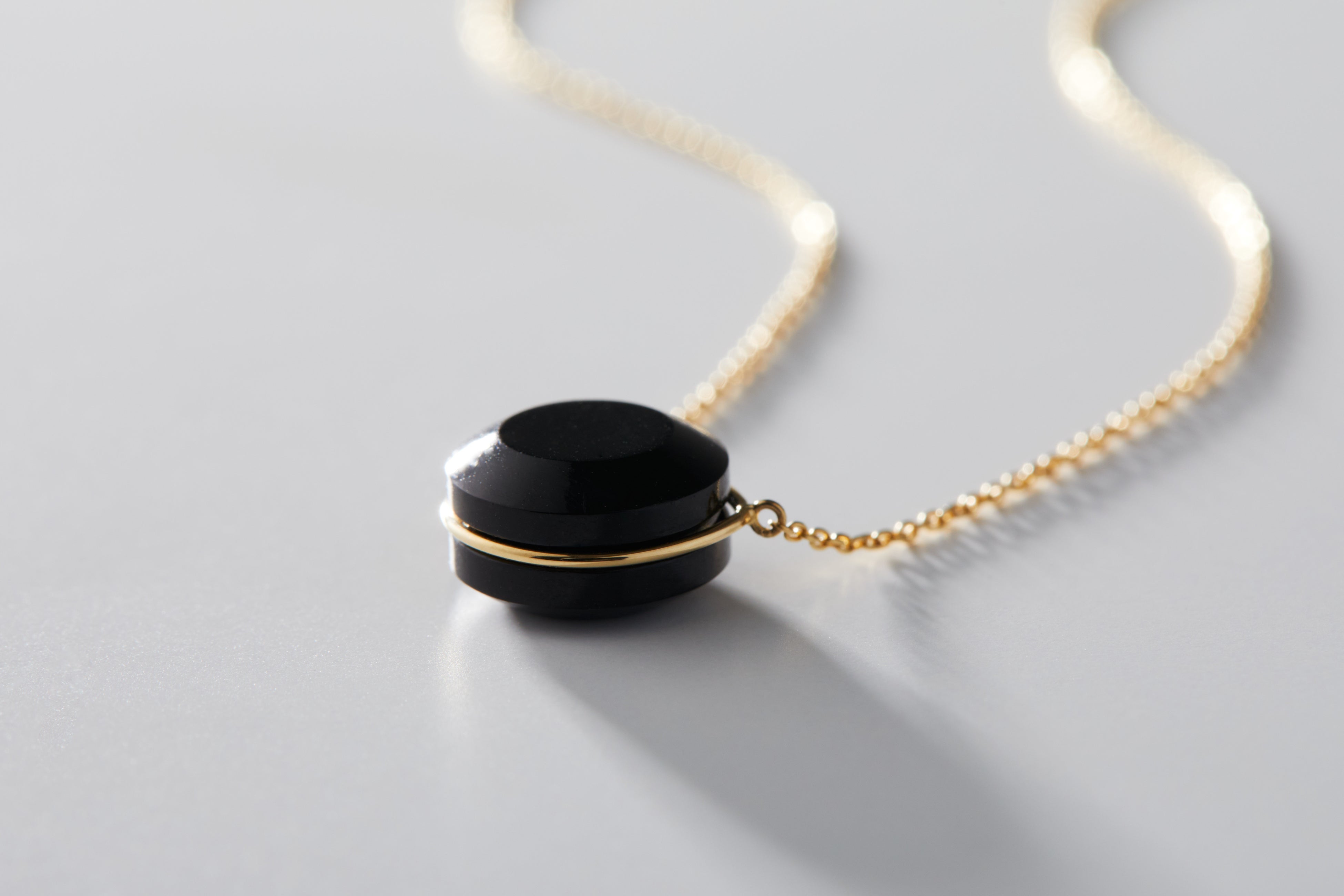 岩手県久慈市で採れる久慈産琥珀と同様に、約9000万年前の地層から採掘されるジェットは、その繊細さゆえ宝石加工が難しいもの。そこで久慈琥珀株式会社では、独自の「リファインドアンバー技術」を活かし、ジェットに琥珀を融合精製する新技術「マリアージュリファインド」製法を確立しました。その技術によって強度を高めるとともに均衡のとれた美しい形状、上質な耀きを丁寧な手仕上げにより可能にしています。「90MM」では、この「マリアージュリファインドジェット(久慈ジェット)」のみを使用することで、資源を大切にしながらも、より力強くデザイン性の高いジェットジュエリーを提案していきます。