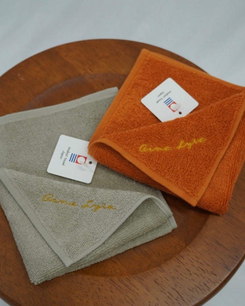 ainaLyraオンラインストアでお買い上げのお客様全員に、オリジナル今治パイルハンカチをプレゼント!(オレンジorグレーベージュ)お色味はランダムとなります。