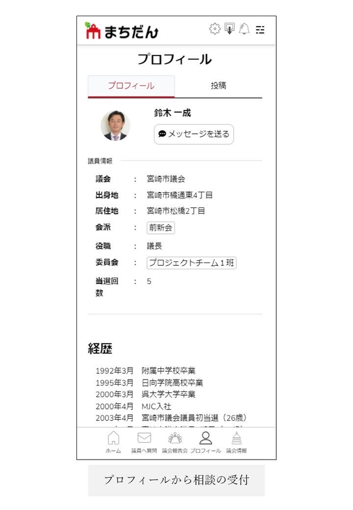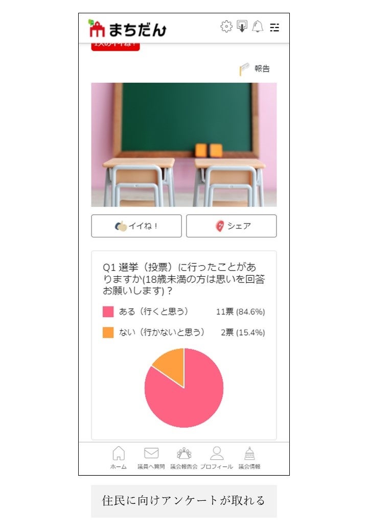 「いままで市議会を遠い存在に感じていましたが、今後“まちだん”が実用されたら議員と直接やり取りができるよ うになるので、とてもいいツールだと思いました」