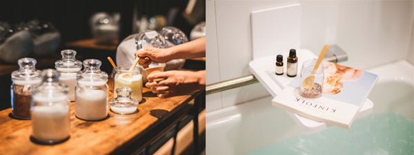 【画像:左】発汗作用の高いエプソムソルトなど香り豊かなバスソルトをご用意
