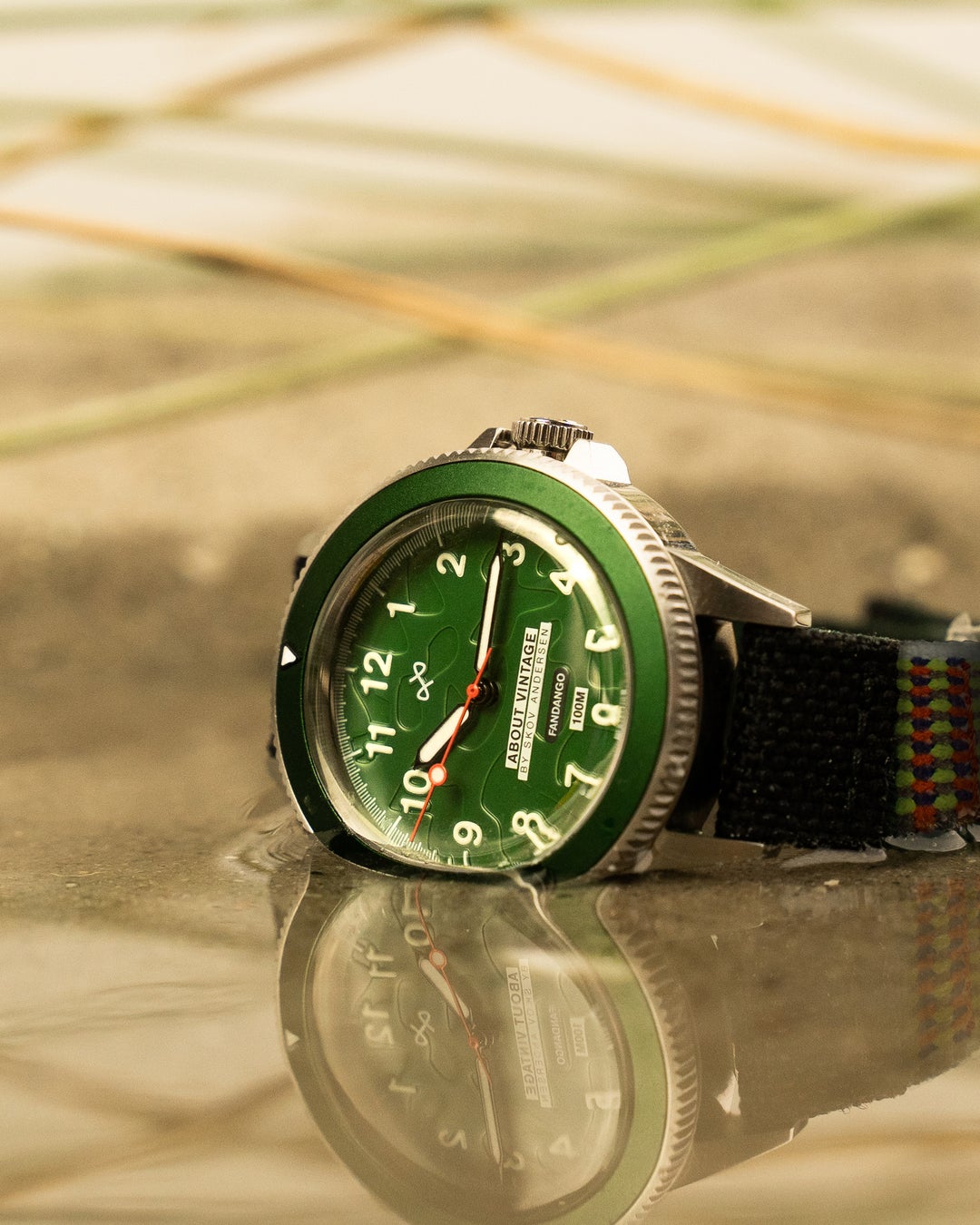 まだ市場に存在しない完璧な時計を求めて、About Vintageは夢の実現に向けてキッズウォッチの制作を開始しました。その成果が詰まったタイムピースが「Fandango」です。5種類をコレクションに加え、ベルトの仕様、傷に強い素材選び、防水機能、蓄光塗装、ベゼルなどたくさんのこだわりが詰まっています。