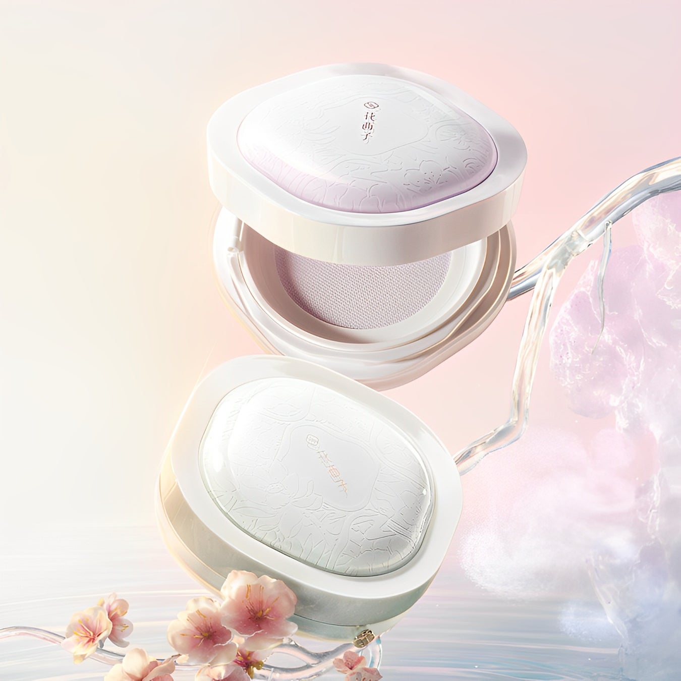花西子FLORASIS定番のプレストパウダー。肌に溶け込むほどの繊細な粉質がしっかり肌に密着し、軽く乗せるだけで毛穴をカバーし、上質なマット肌を実現。