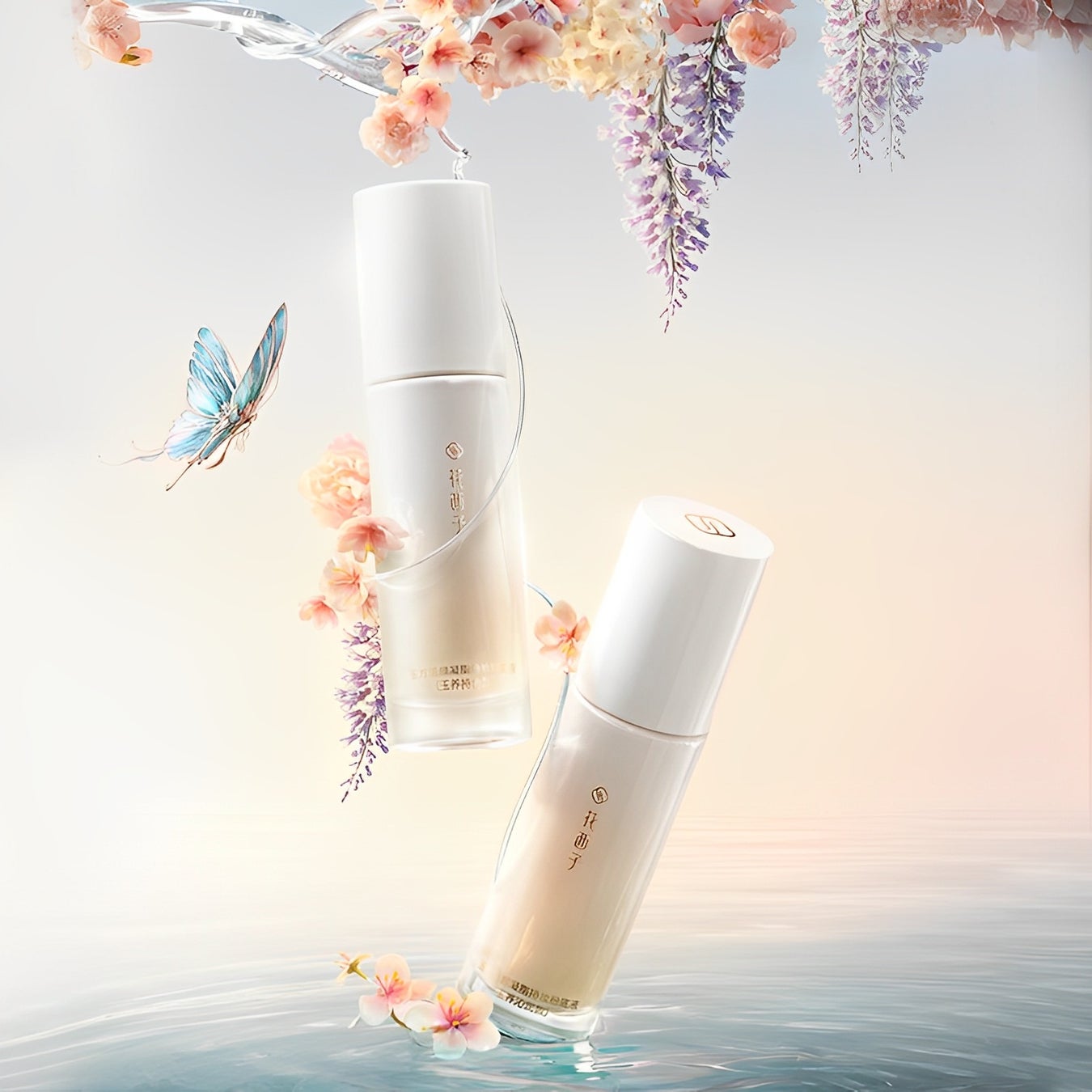 花西子FLORASISは、中国の至宝として尊ばれている玉石の清らかさと品格からインスピレーションを受け、伝統工芸の繊細さと現代技術の革新を融合させた玉石の温もりと澄んだ輝きを、今回の「玉容桃花シリーズ」に落とし込みました。まるで玉を磨くように、肌を整え、内側から生まれる自然な美しさを引き立たせます。